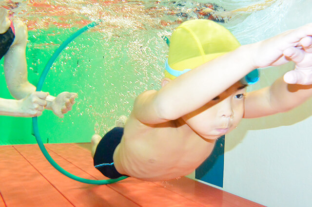 早い段階での泳ぎの習得を目指し、能力の向上を図ります。また、水泳指導と共に「あいさつ/マナー」に関する社会性の習得も目指します。