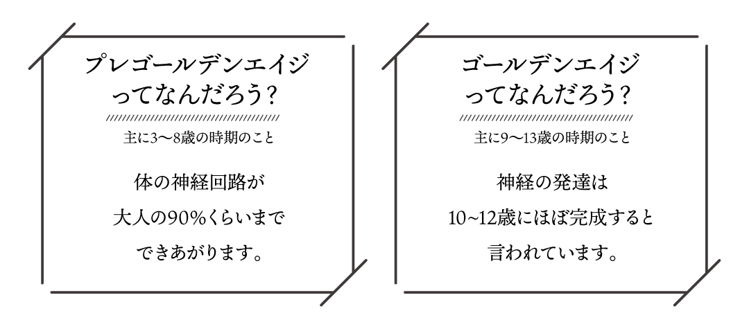 ・神経系の発達がほぼ完成しており、新しい動きを覚えたり複雑な技術を習得したりする能力が高い。