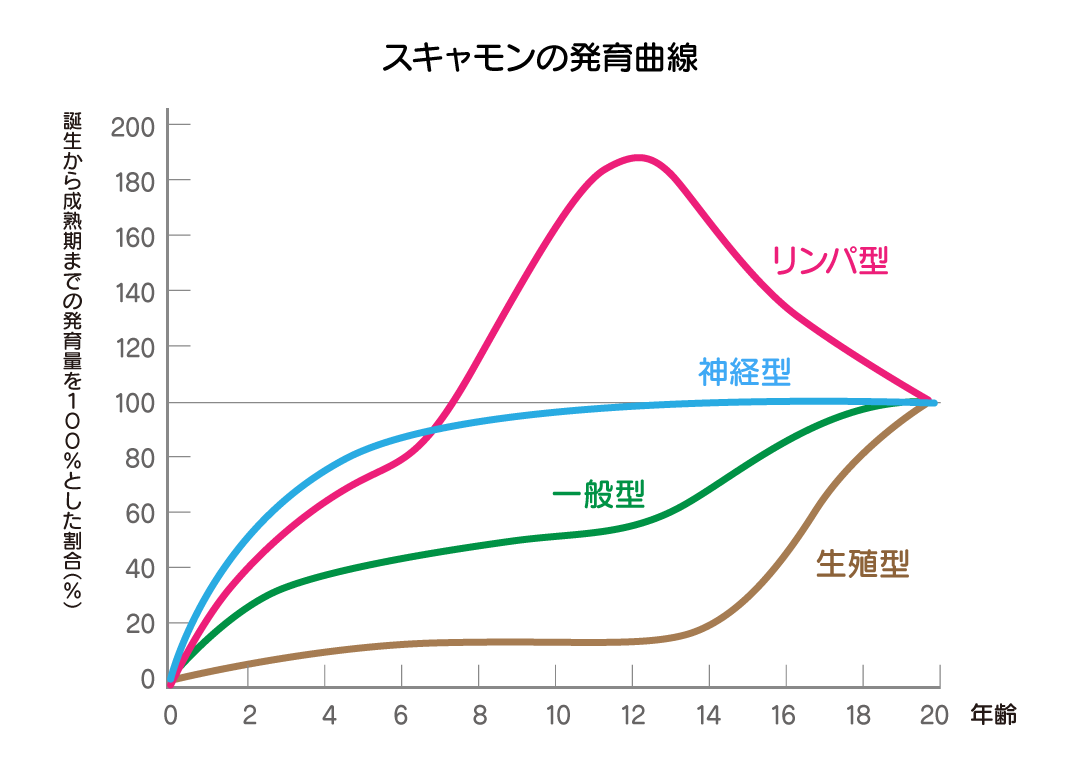 リンパ型は、胸腺などのリンパ組織の成長を示したものです。