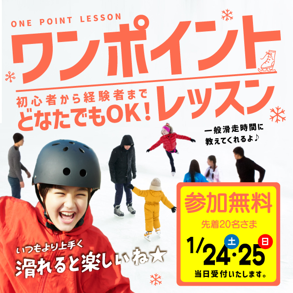 無料スケートワンポイントレッスン&ホッケー体験有り