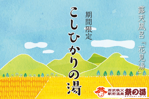 露天風呂「花見湯」にて「こしひかりの湯」実施中