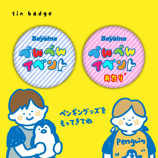 ペンギングッズを持ってくると、オリジナル缶バッジがもらえる!