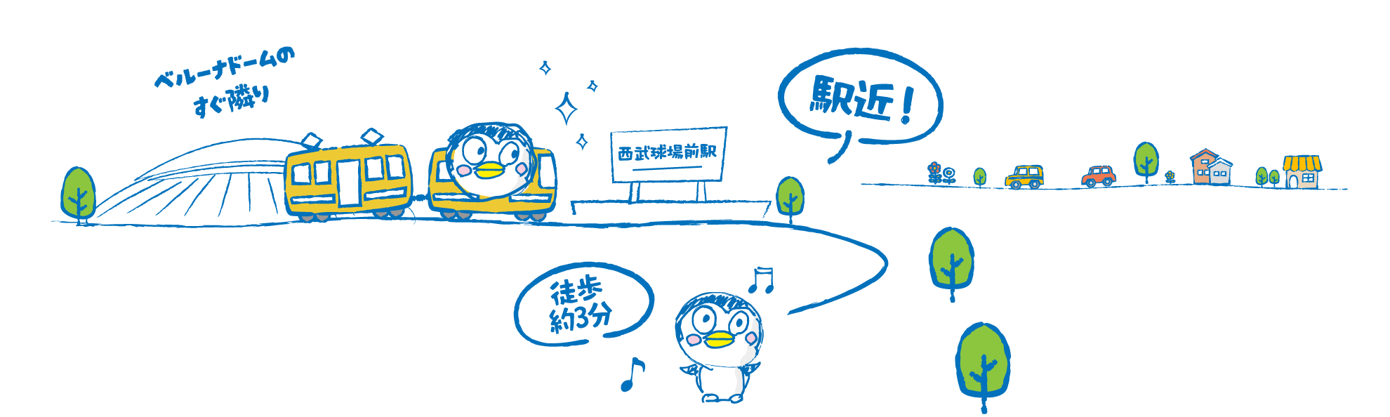 ・多摩湖線「多摩湖」駅乗り換え、山口線(レオライナー)「西武球場前」駅下車