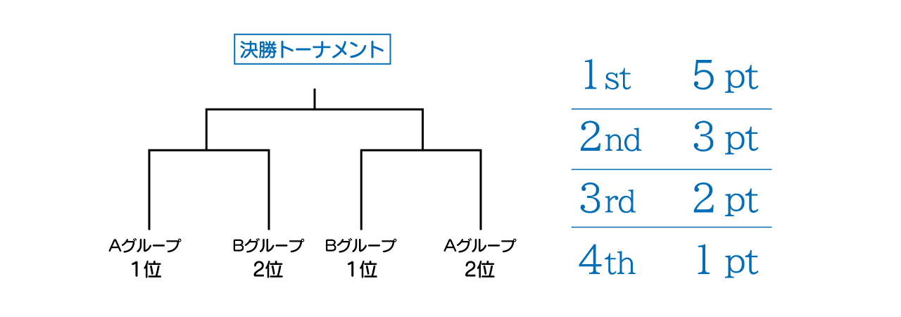 その日のうちに決勝トーナメントを実施し、その順位によりポイントが付与されます。