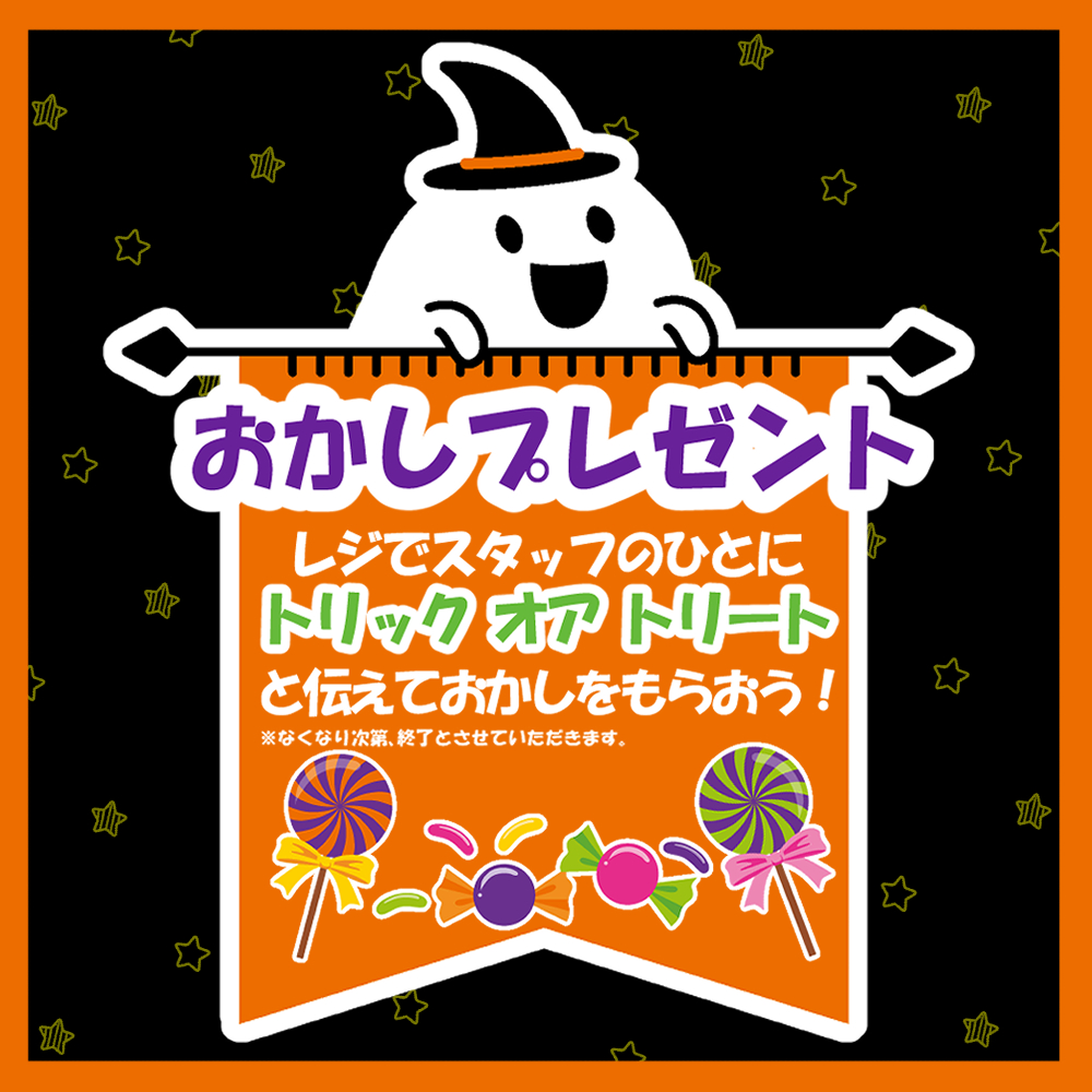スケートセンターのレジでスタッフのひとに「トリック オア トリート」と伝えておかしをもらおう!