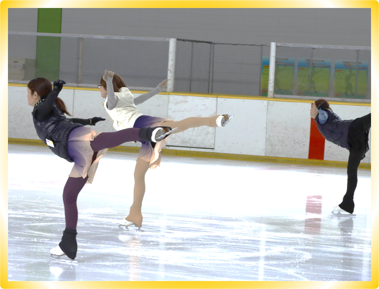 フィギュア教室の日曜のジュニア・一般・中級~上級者の教室は、フレンド教室と同時間内で実施いたします。