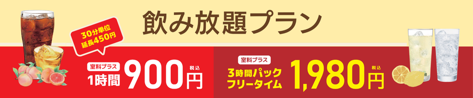ご利用は1時間からです。また、延長・精算は30分単位です(フリータイムを除く)。