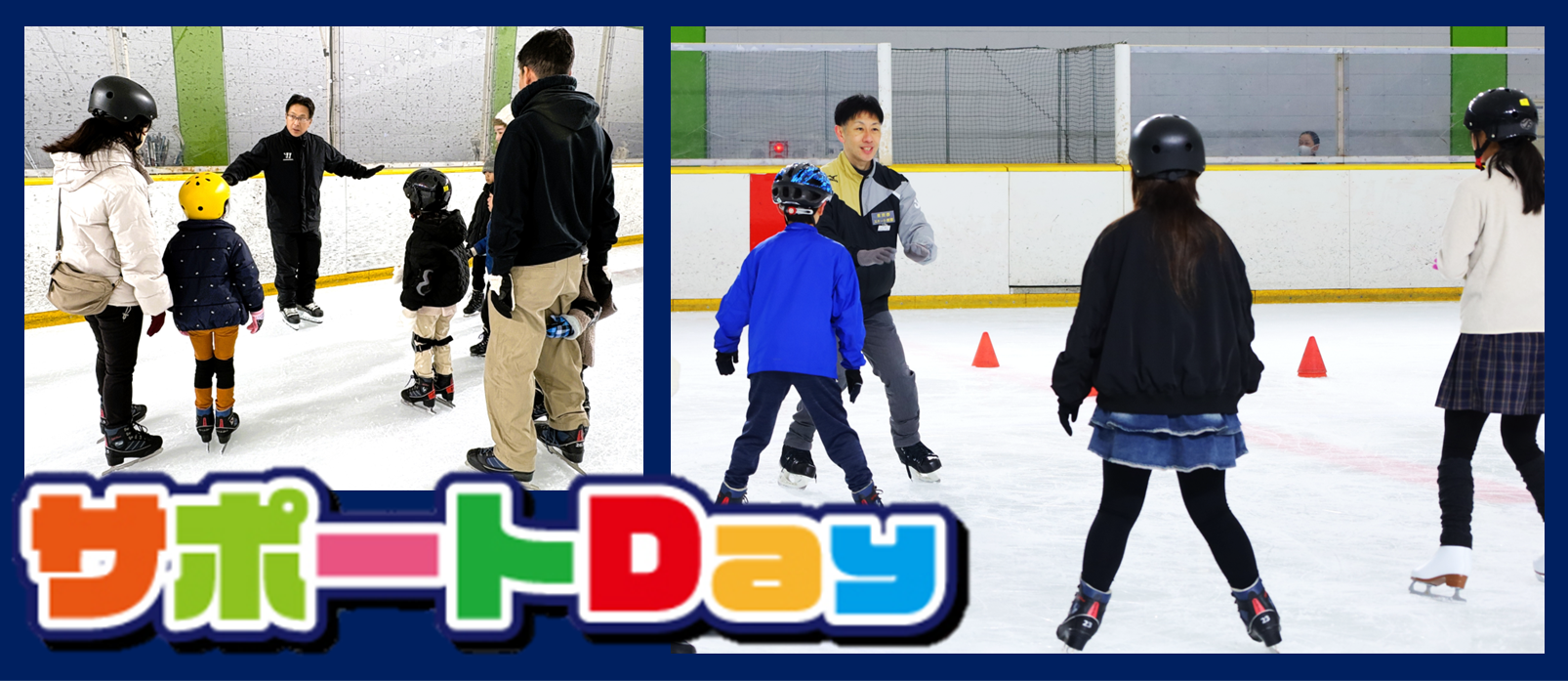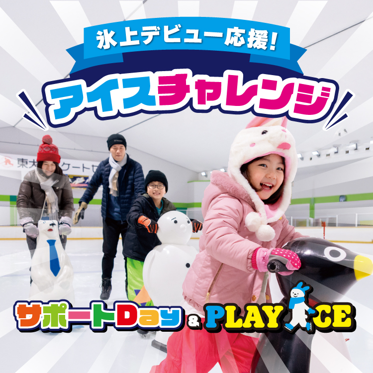 靴を履いたまま氷上で遊べる「PLAY ICE」や、特別スケートレッスンなどが開催される「サポートDAY」をご用意。